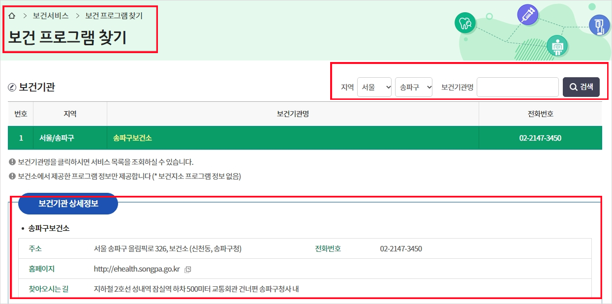 - 찾는 법: e-보건소(www.e-health.go.kr) 접속 → '보건서비스->보건프로그램 기관 찾기' 메뉴 클릭 → 내 지역(시/도, 구/군) 선택!