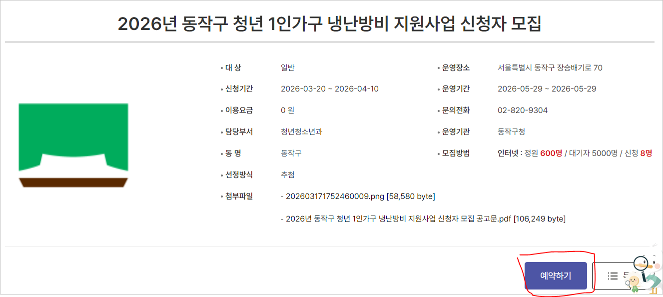 2026년 동작구 청년 냉난방비 지원대상 자격