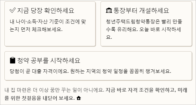 청년주택드림대출을 받기 위한 첫걸음은 청년주택드림청약통장에 가입하는 거죠. 통장 조건이 중요하니까 일찍부터 준비하는 게 좋네요.그리고 나서 꾸준히 납입해야 해요.